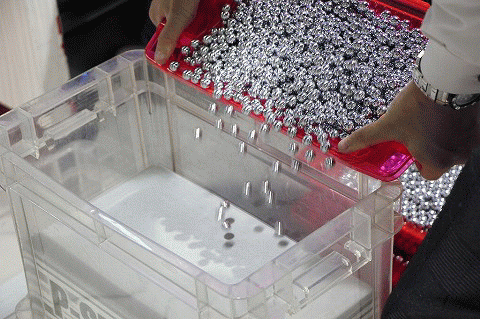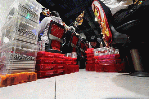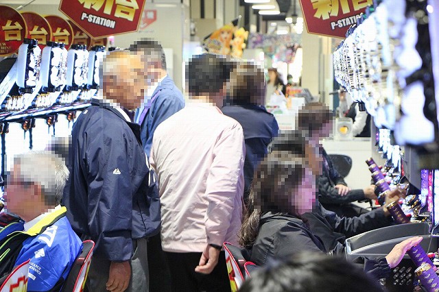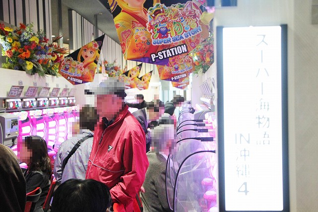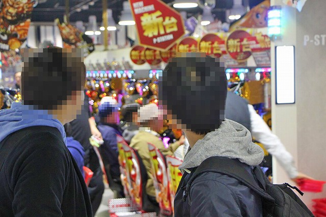 | 【パチンコサイド】真っ先に人が集中したのは、新台入替の注目機種。さらに『海物語』シリーズなど定番機種から埋め尽くされていく。どのコーナーでも行き交うファンの視線は豪剣いや、“真剣”そのもの! | |