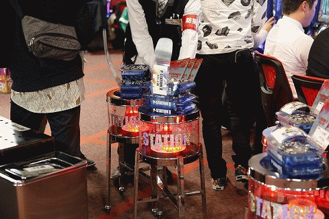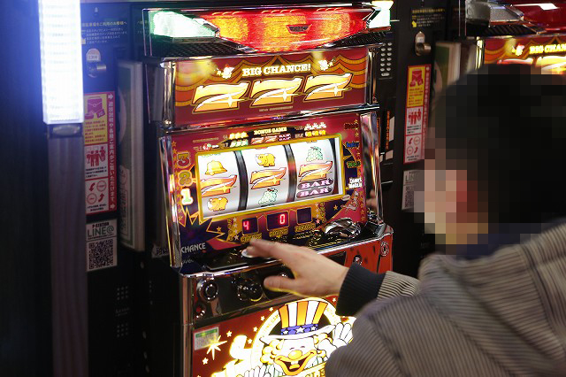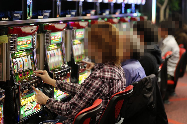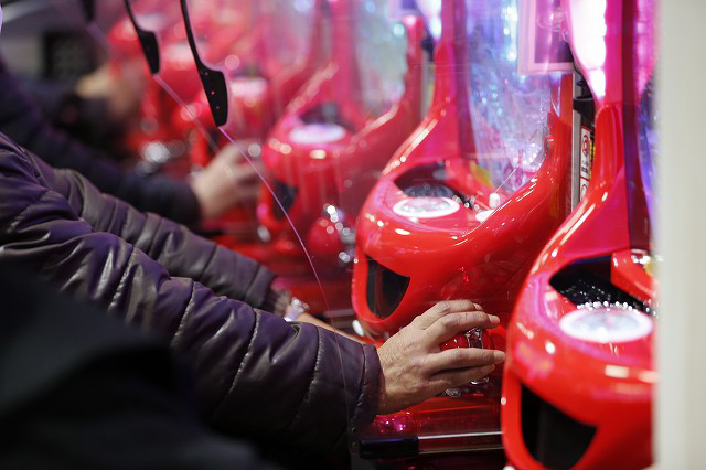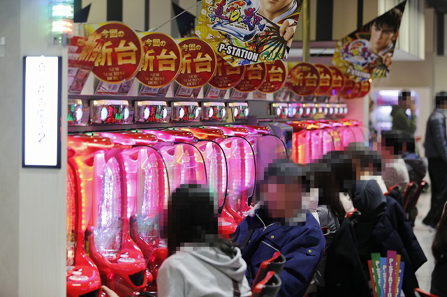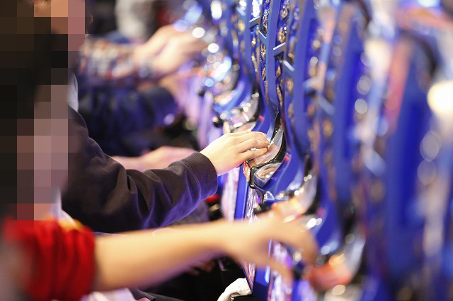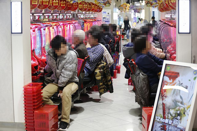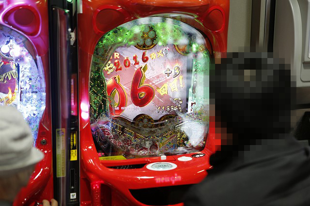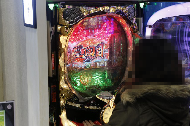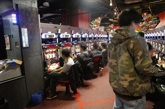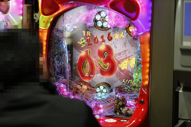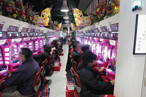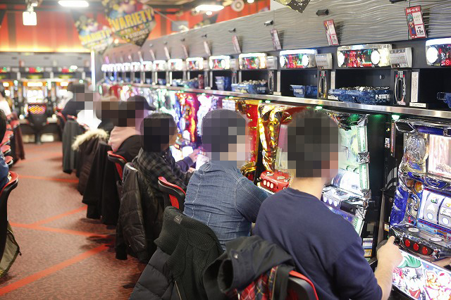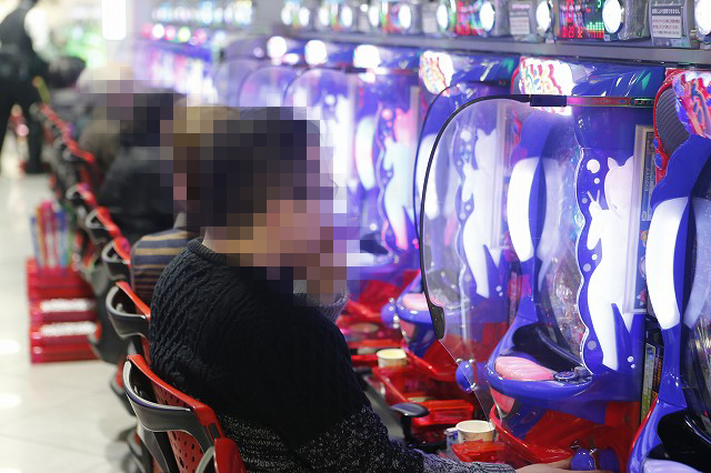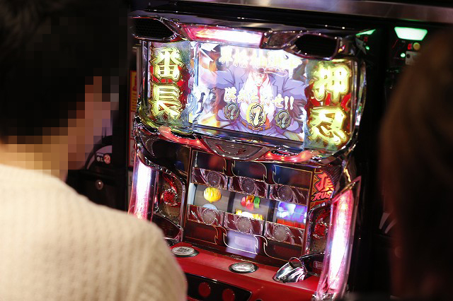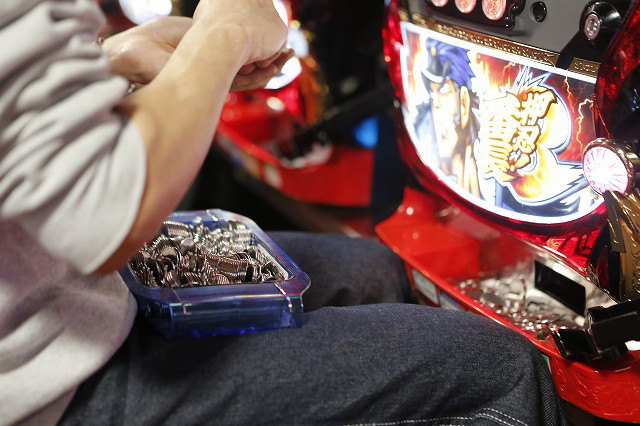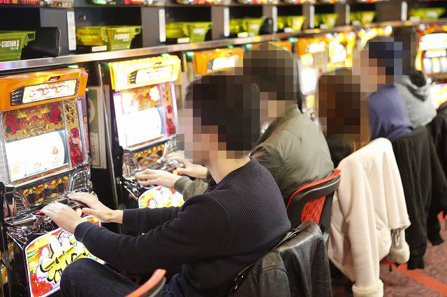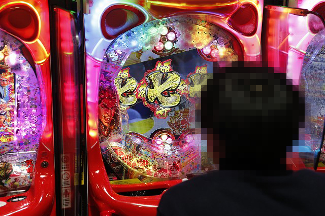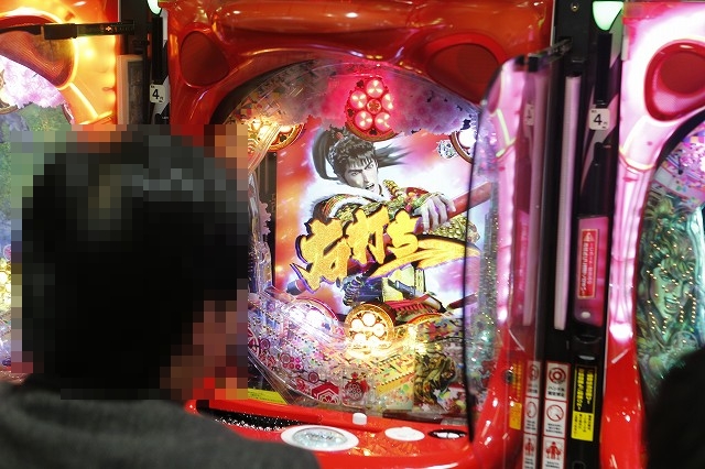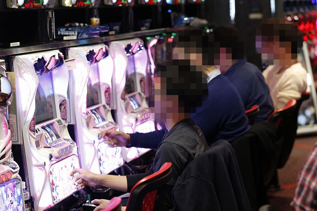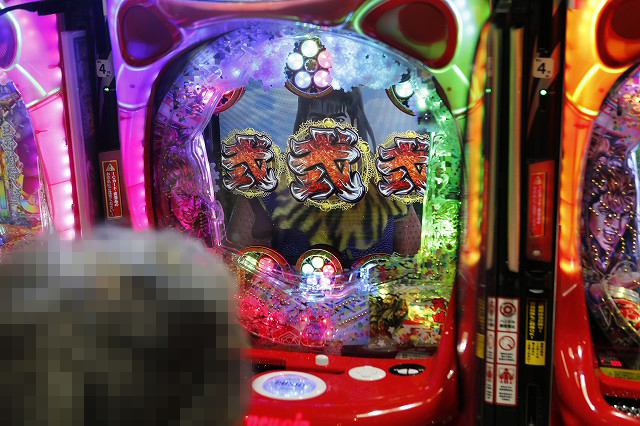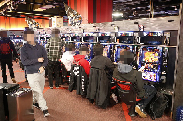 パチンコフロアでガッチリとハンドルを握り!