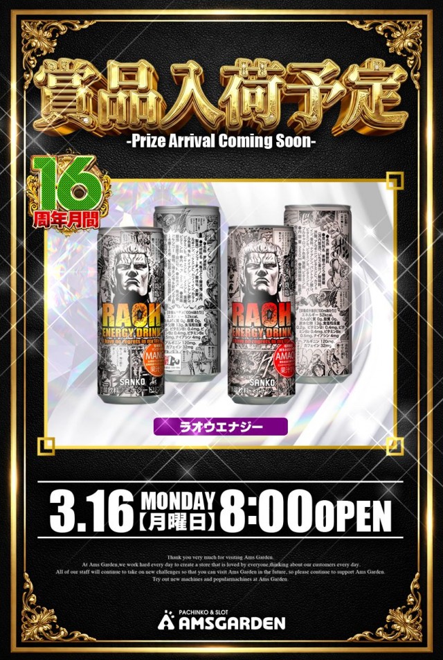 3月4日!駅前アムズ16周年!!抽選開始8時30分から!