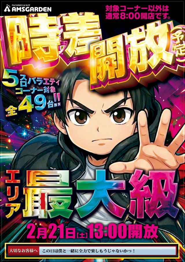 明日!2月13日(金)新台入替(予定)!全館9時オープン!