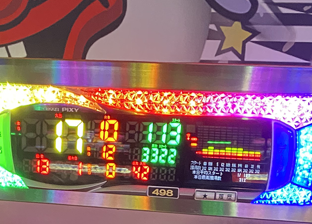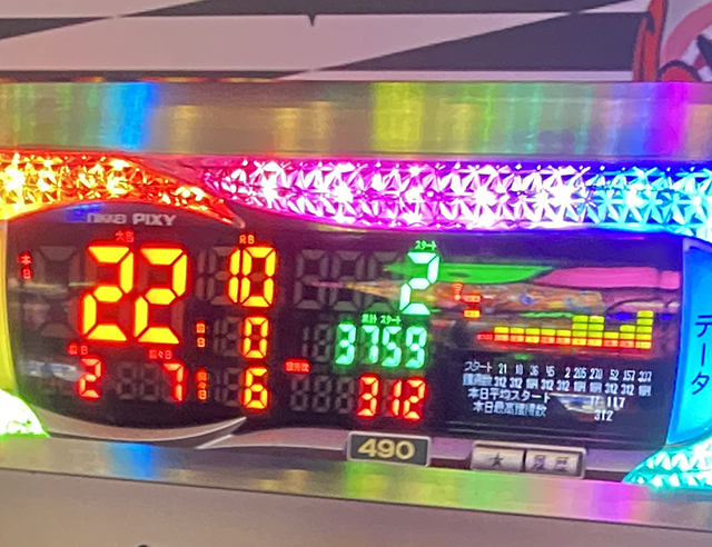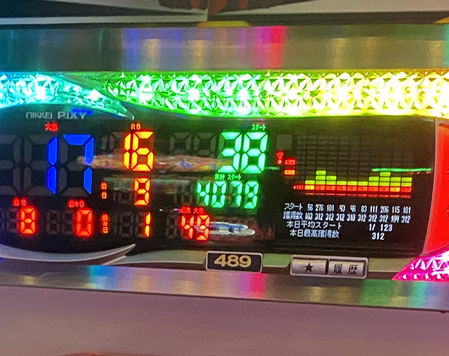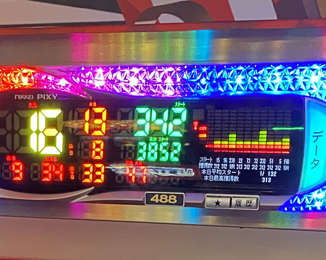 データカウンターに目をむけると、4台が20回以上のボーナスに当選。ボーナス合算確率が1/107や1/113など、設定6の数値を上回っている台も確認した。
