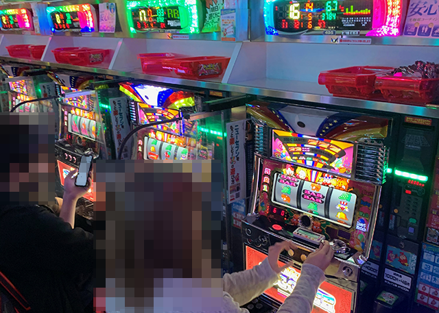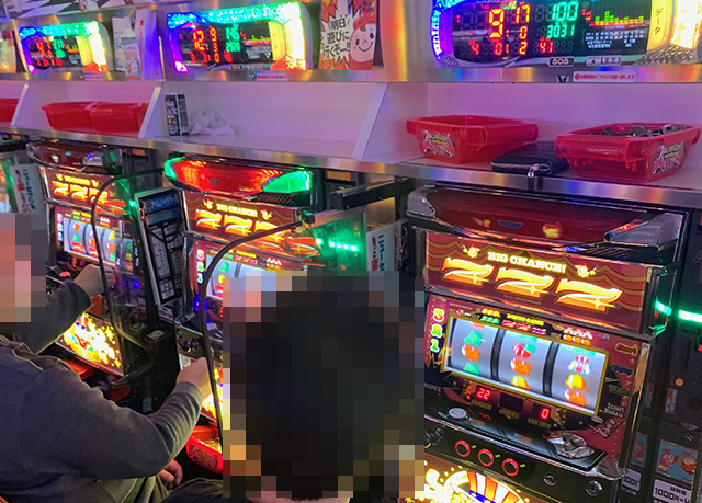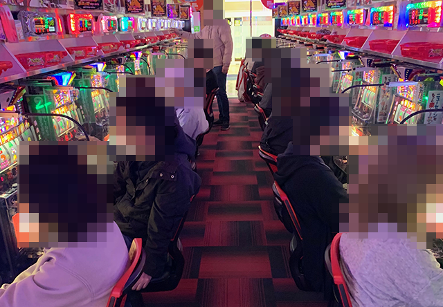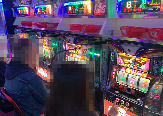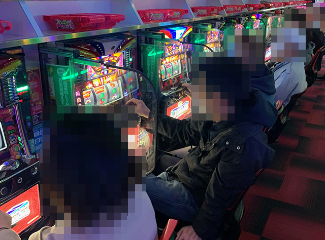 滞在中にプレイヤーが席を離れる場面はなく、『マイジャグラーⅢ』のにぎわいはつねに大きい。