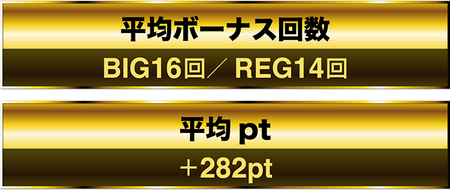 14時頃にデータカウンターをチェックすると、5台が30回以上のボーナスに当選。どの台もBIGとREGの比率に差が少なく、バランスよくボーナス回数を伸ばしていた。