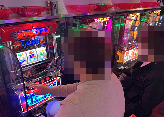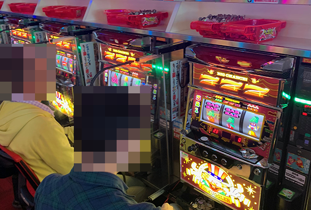 「アイムジャグラーEX-AE」でも多くのプレイヤーが遊技をおこなっており、大きな活気が感じられた。