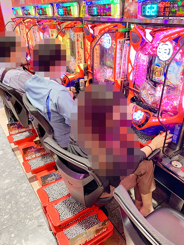 17時ごろの4円パチンコでは、「CRスーパー海物語IN JAPAN 319バージョン」や「CR大海物語BLACK LIGHT」などの海物語シリーズが盛況で、機種のポテンシャルをフルに活かすプレイヤーを複数確認している。