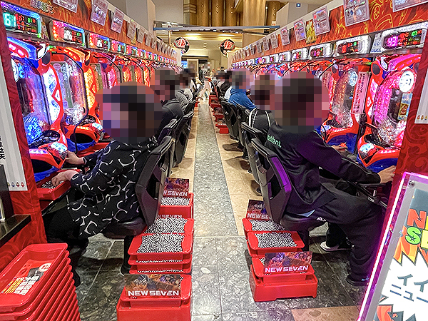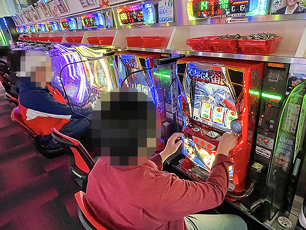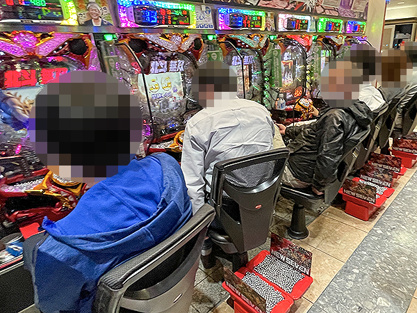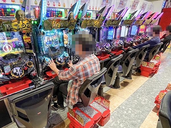 14時ごろの4円パチンコを見ると「P大工の源さん 超韋駄天」や「ぱちんこCR真・北斗無双」、「Pギンギラパラダイス 夢幻カーニバル 319ver.」が盛況の様子。華麗なパフォーマンスを披露するプレイヤーを多数目撃している。