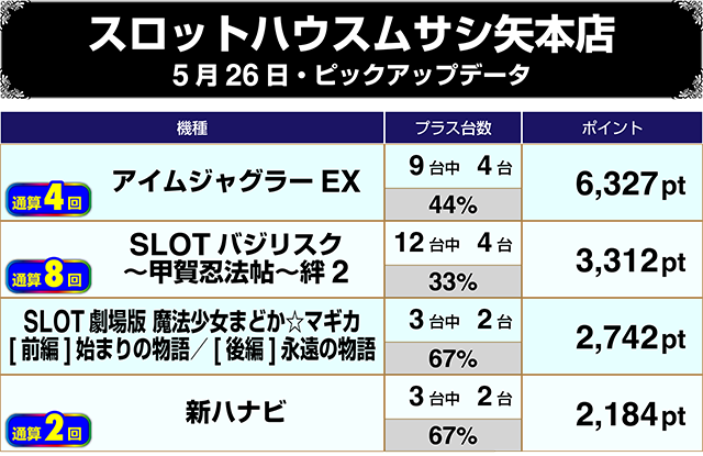 【5/26スロットハウスムサシ矢本店をピックアップ】