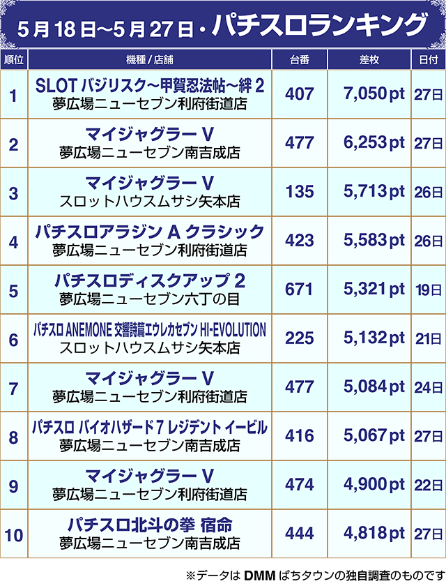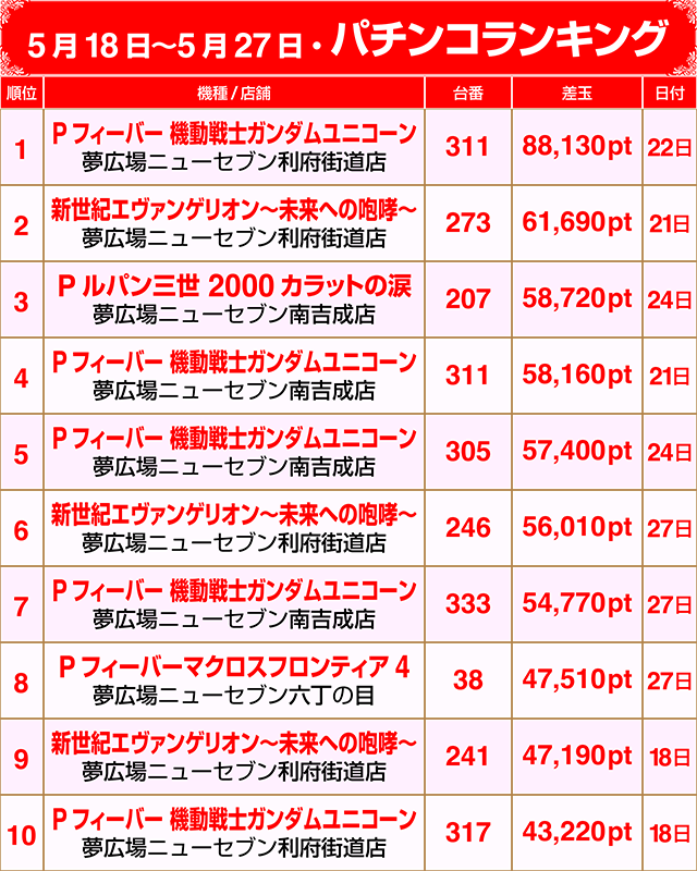 5月18日から5月27日までの10日間は、パチンコとパチスロのどちらにも目を引く記録が並んだ。