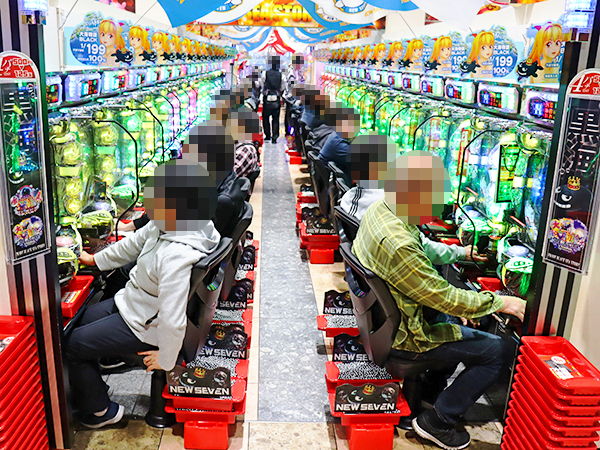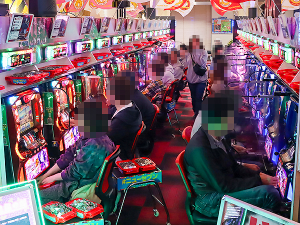 取材時は既に多くのプレイヤーが集結し、パチンコ・パチスロを問わずにぎやかな状況となっていた。