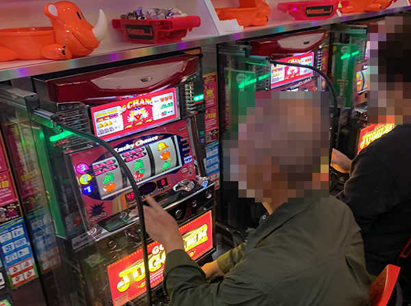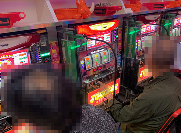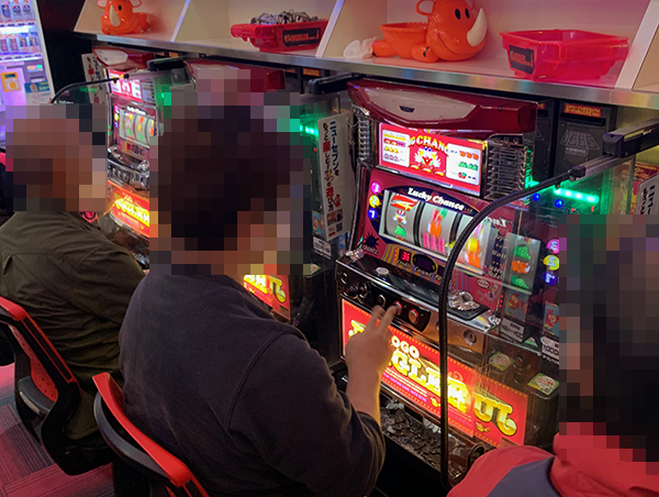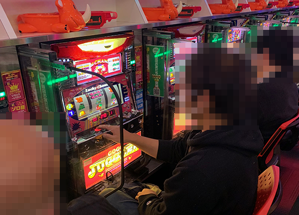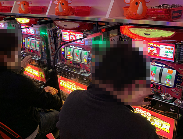 「ゴーゴージャグラー」をはじめ、パチスロ全体がにぎわっており、プレイヤーたちは遊技を満喫している様子であった。