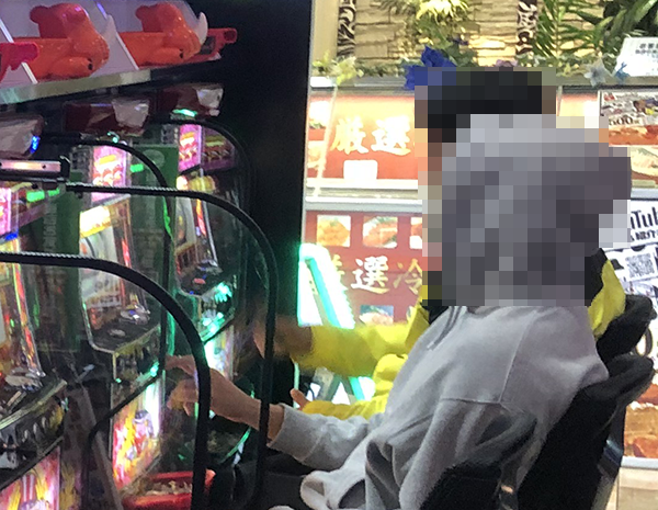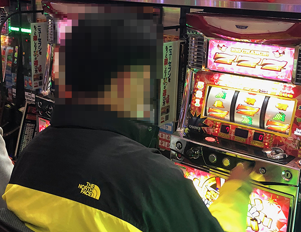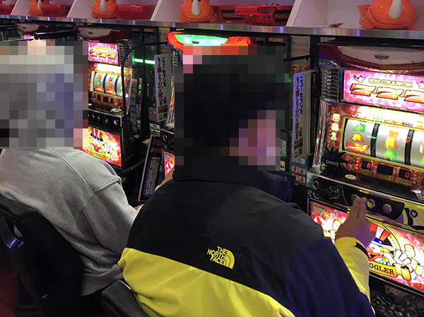 パチスロではさまざまな機種が好評となっており、随所がにぎやかな状況。シマを移動するたびに、パフォーマンスを披露している姿がみられた。