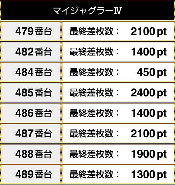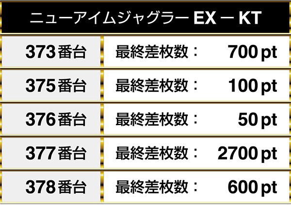 『ニューアイムジャグラーEXーKT』は7台中5台がプラスptとなり、なかには2000ptを上回る台もあった。