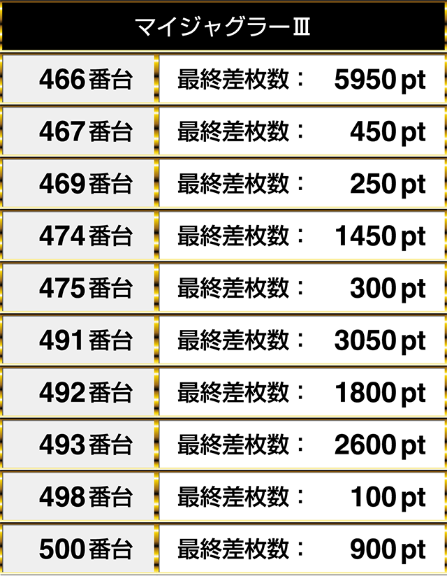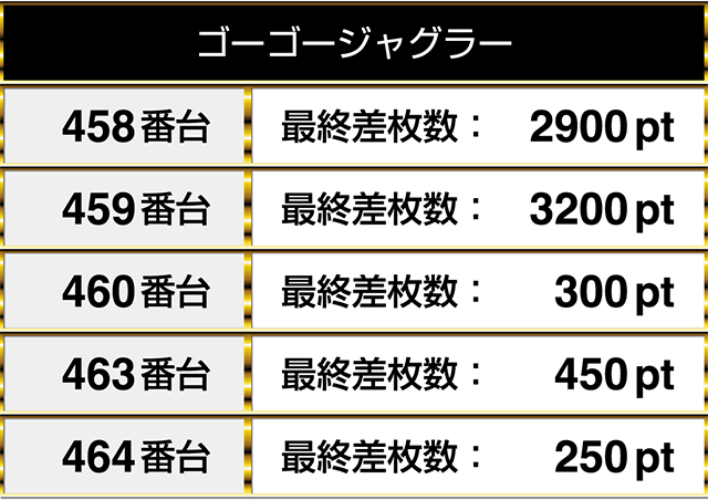 8台設置の『ゴーゴージャグラー』は3200ptを含めて、5台がプラスpt!!