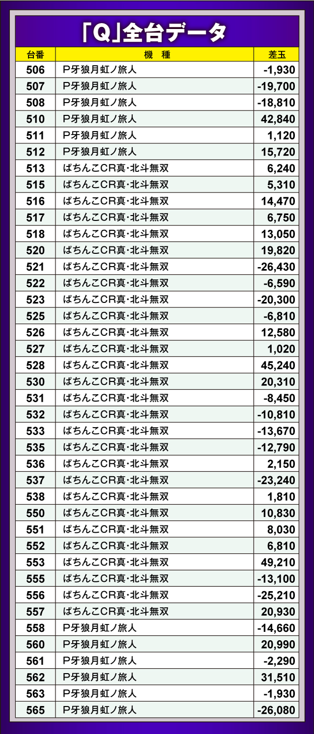 『P牙狼 月虹ノ旅人』&『ぱちんこCR真・北斗無双』から、20,000玉オーバーのみならず、30,000玉オーバー記録も確認。さらにパチンココーナーでは、前述の2機種以外でも随所で大満足の光景を目撃することができた。それもこれも「Q」出現効果…!?