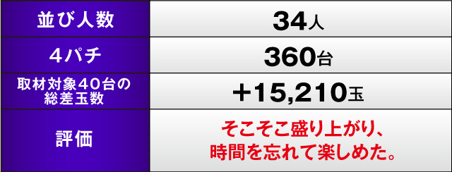 今回の取材対象40台の総差玉数はプラス15,210玉と3月の記録には及ばなかったものの、手堅くプラス差玉を記録し、優秀店の証を見せつけた。大勢のファンが時間を忘れて楽しんでいた1日となった「英雄の軌跡」、次の機会にも期待したい。