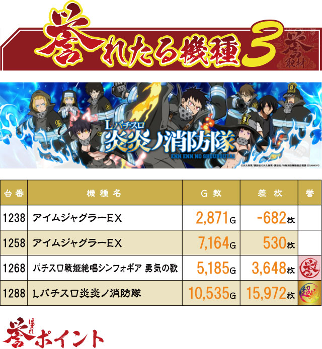 1288番台から15,972枚という化物レコードが誕生!さらに1268番台も3,500枚を突破するなど、末尾8に優秀台が集中していた説がますます色濃くなった。