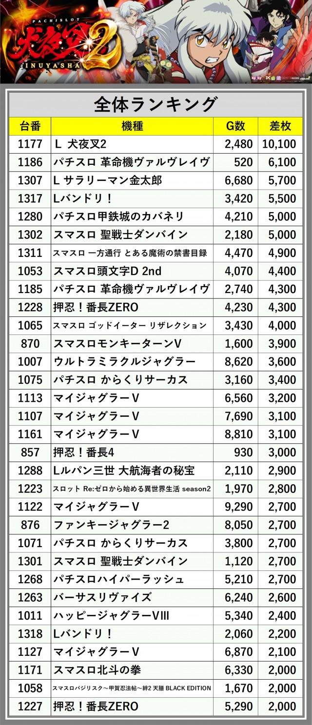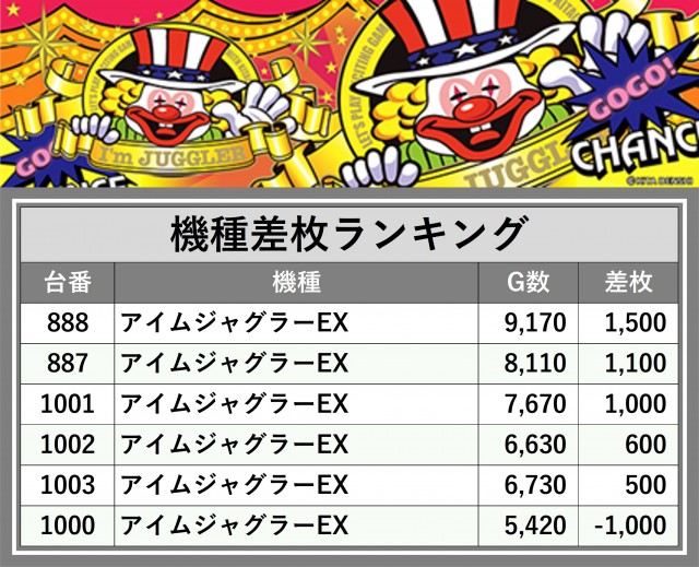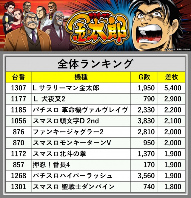 厳選された取材対象機種をはじめ、その他スロット全体から好記録が飛び出した!プレイヤーが楽しんだ1日を下記データにて振り返ってみて欲しい。