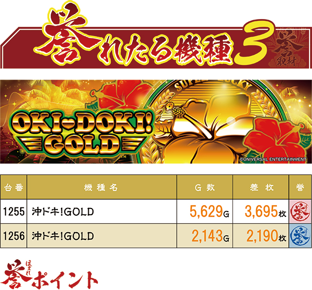 『沖ドキ!GOLD』からも2台の誉レコードが出現。前回は誉ランキング入賞はできなかったが、今回はしっかりいい働きをしてくれたようだ。