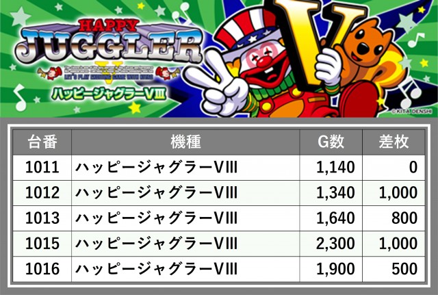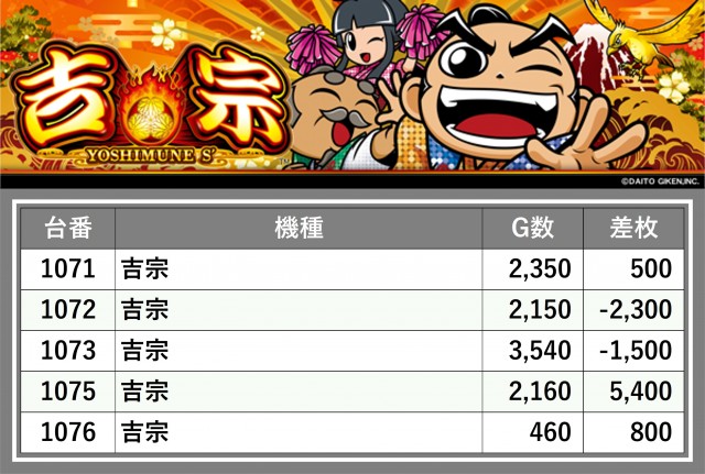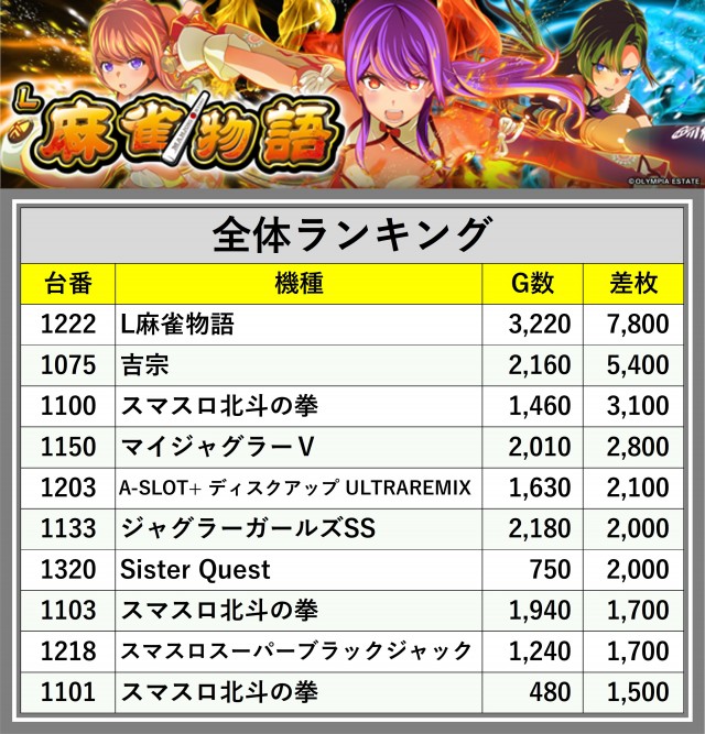 厳選された取材対象機種をはじめ、その他スロット全体から好記録が飛び出した!プレイヤーが楽しんだ1日を下記データにて振り返ってみて欲しい。