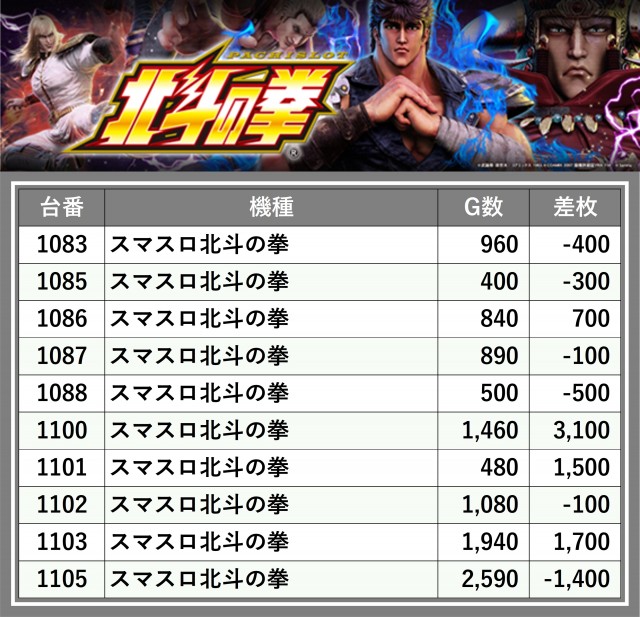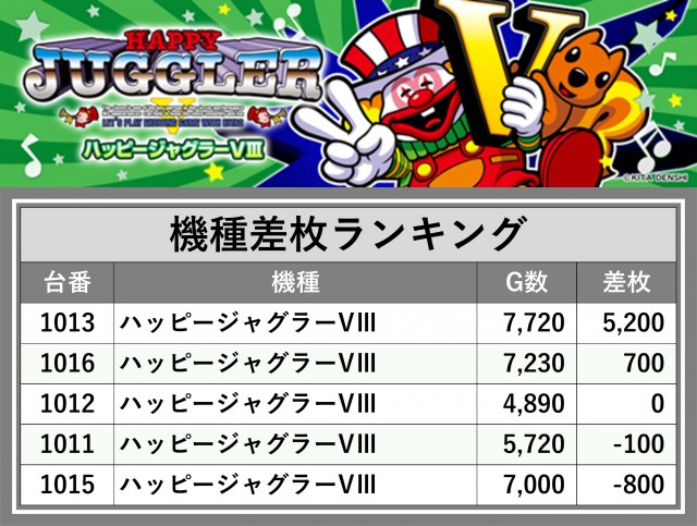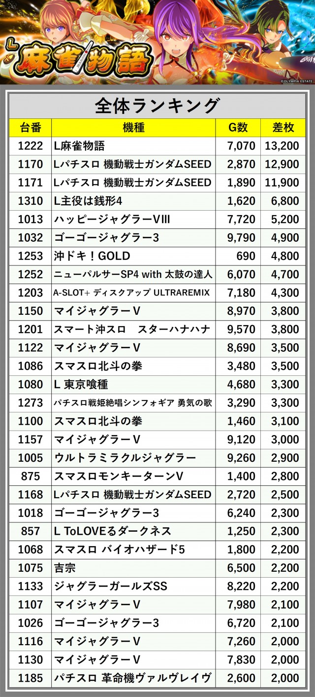 ※差枚数順に掲載しています