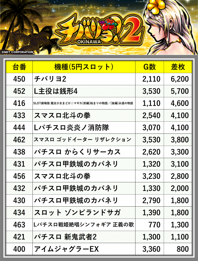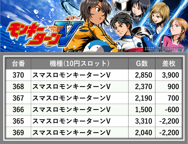 厳選された取材対象機種をはじめ、その他スロット全体から好記録が飛び出した!プレイヤーが楽しんだ1日を下記データにて振り返ってみて欲しい。