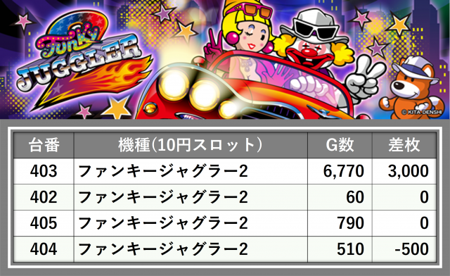 厳選された取材対象機種をはじめ、その他スロット全体から好記録が飛び出した!プレイヤーが楽しんだ1日を下記データにて振り返ってみて欲しい。