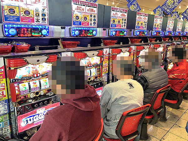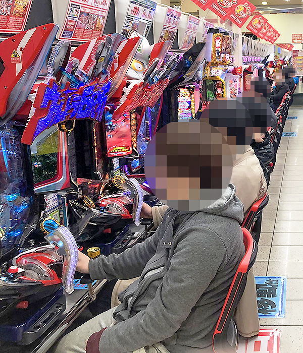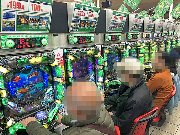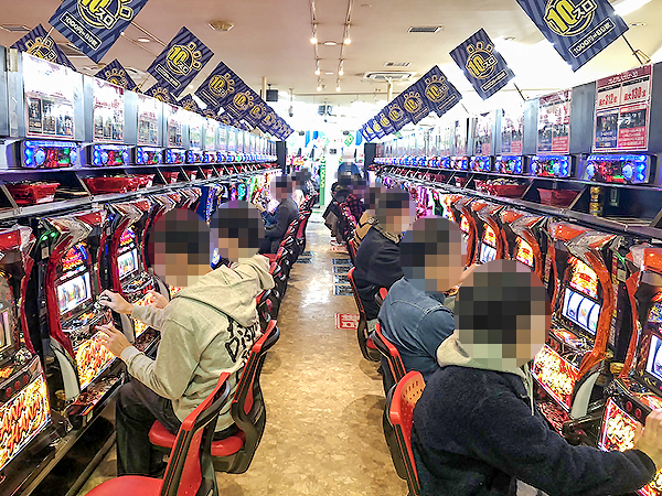 取材時は既に多くのプレイヤーであふれており、パチンコ・パチスロを問わず楽しげな表情でいっぱいだった。