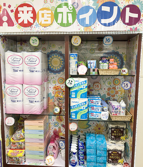 景品コーナーには来店ポイントで交換できるアイテムが各種用意されており、プレイヤーから好評を得ていた。