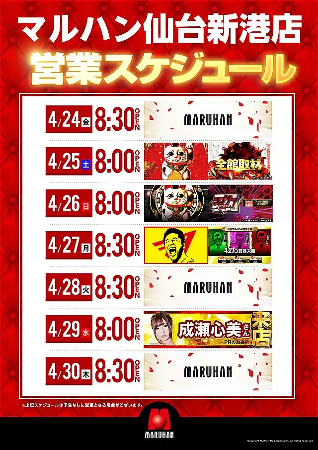 宮城マルハングランプリ(MMGP)~あらすじ~杜の都、宮城県に根を下ろすマルハン。その宮城県下マルハン3店舗が、己のプライドをかけて立ち上がった。ジャッジ役となったのが、ご存知の通りDMMぱちタウン。我々は取材を通して、各店舗の状況を数値化…