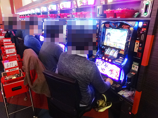 20円パチスロは全体的ににぎわっており、たくさんのプレイヤーが集まっていた。なかでも「バジリスク~甲賀忍法帖~絆」や「パチスロ北斗の拳 強敵」が高稼働となっており、手腕を発揮しているプレイヤーが多数。