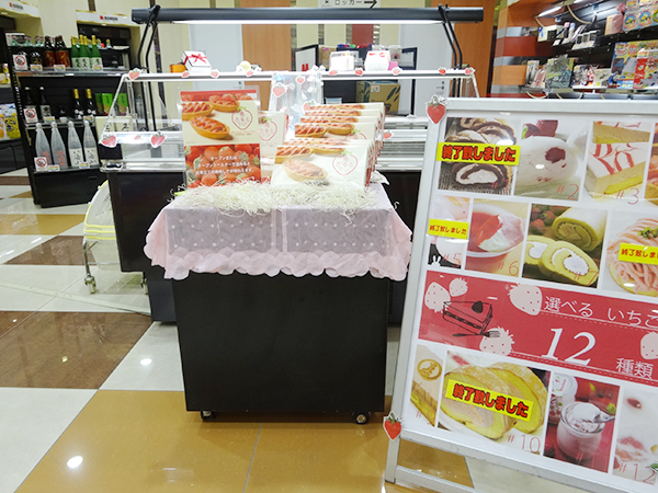 景品コーナーも充実しており、この日はイチゴ関連のさまざまなスイーツを用意。品切れになっているスイーツもみられるほどの人気であった。