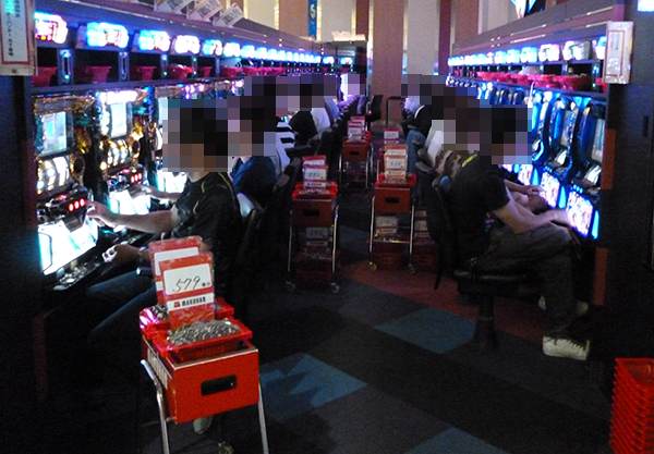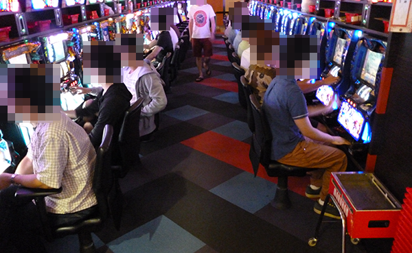5円パチスロと1円パチンコのにぎわいも大きい。