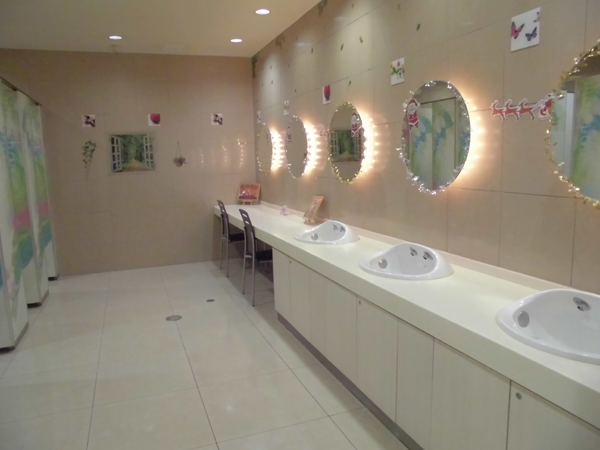 遊技スペースだけでなく、トイレまでキッチリと飾り付けられたホール内は見応えも抜群!
