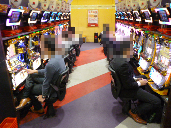 注目の大きさに影響するユーザーのパフォーマンスは華やか。シャッターチャンスが何度も訪れた。「マルハン仙台駅東店」の一面はパチスロコーナーで決まりだろう。
