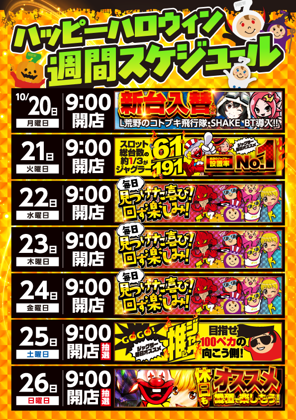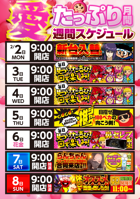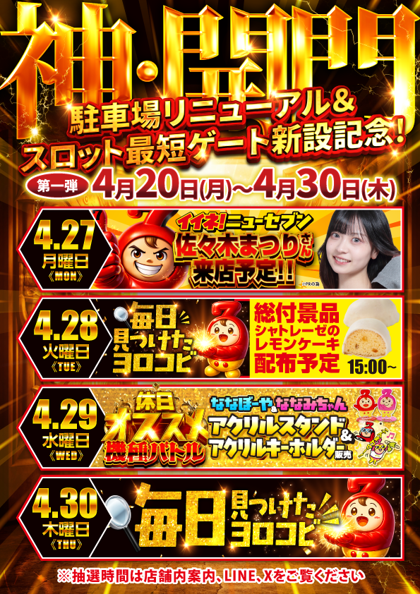 明日、令和7年7月7日(月)新台入替[予定]朝8:30開店♫