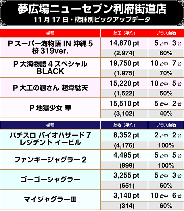グループ全体のTOP10から16日、17日の各店舗の注目機種まで、すみずみまで徹底解剖していく。
