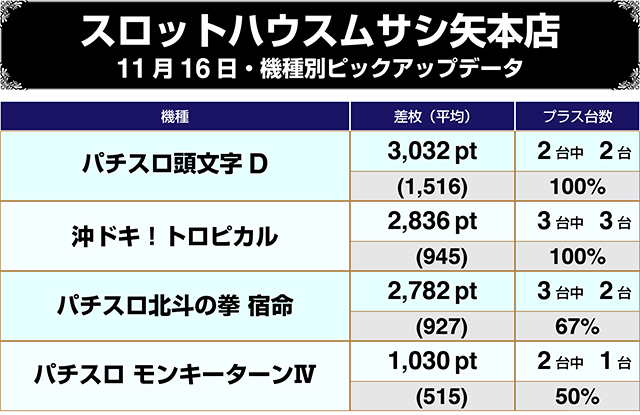 【11/16スロットハウスムサシ矢本店をピックアップ】