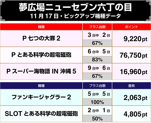 パチンコの『Pとある科学の超電磁砲』も6台中5台がプラスと好評。