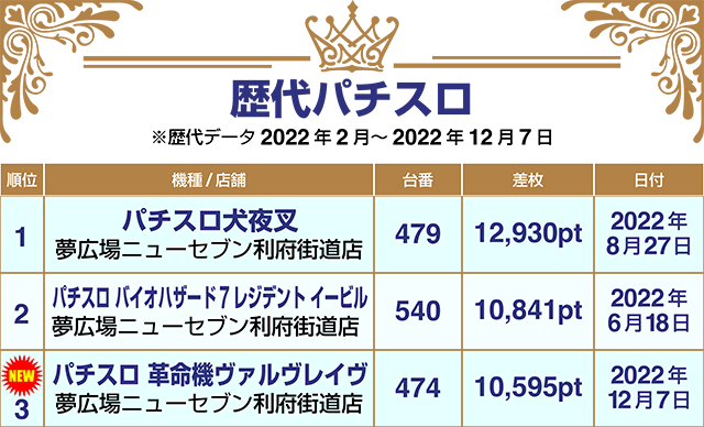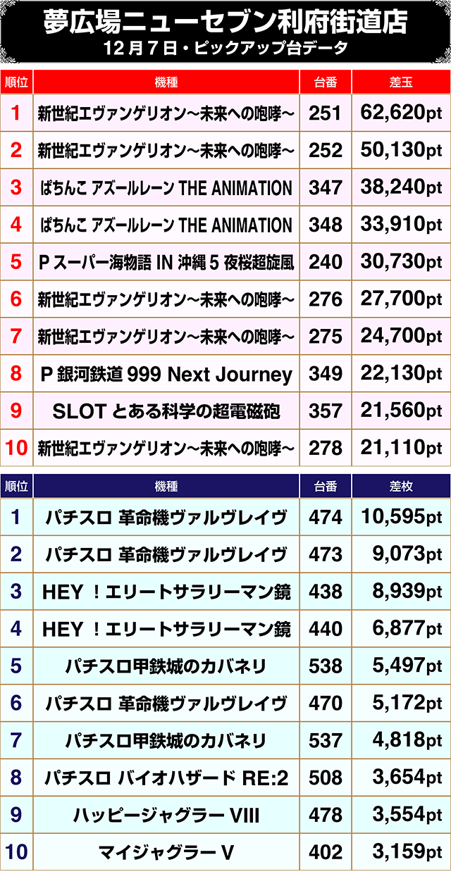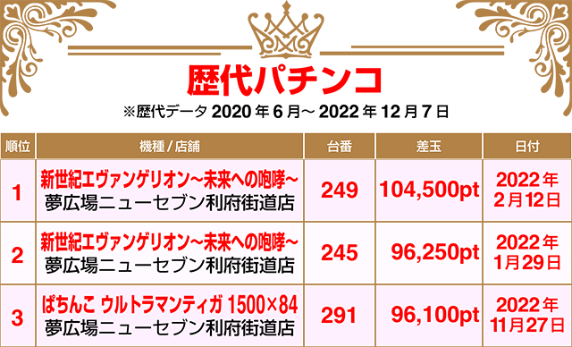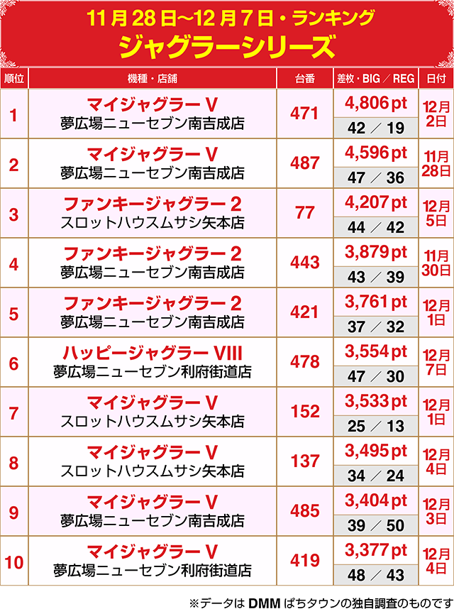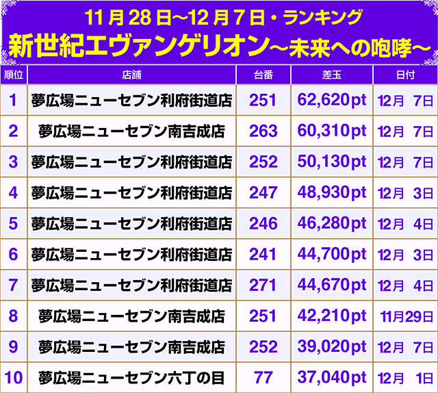 大規模な新台入替をはさんだ、11月28日から12月7日までの10日間!!