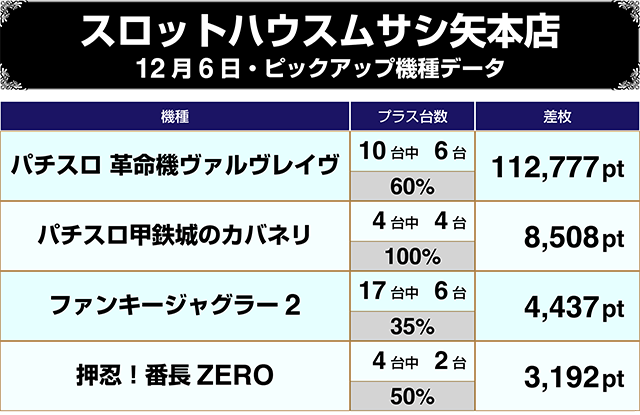【12/6スロットハウスムサシ矢本店をピックアップ】