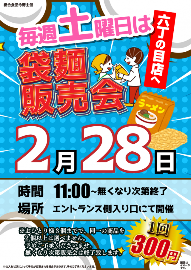🌈明日2月28日袋麺販売会は11時~開催!🌈朝9時開店!🌈