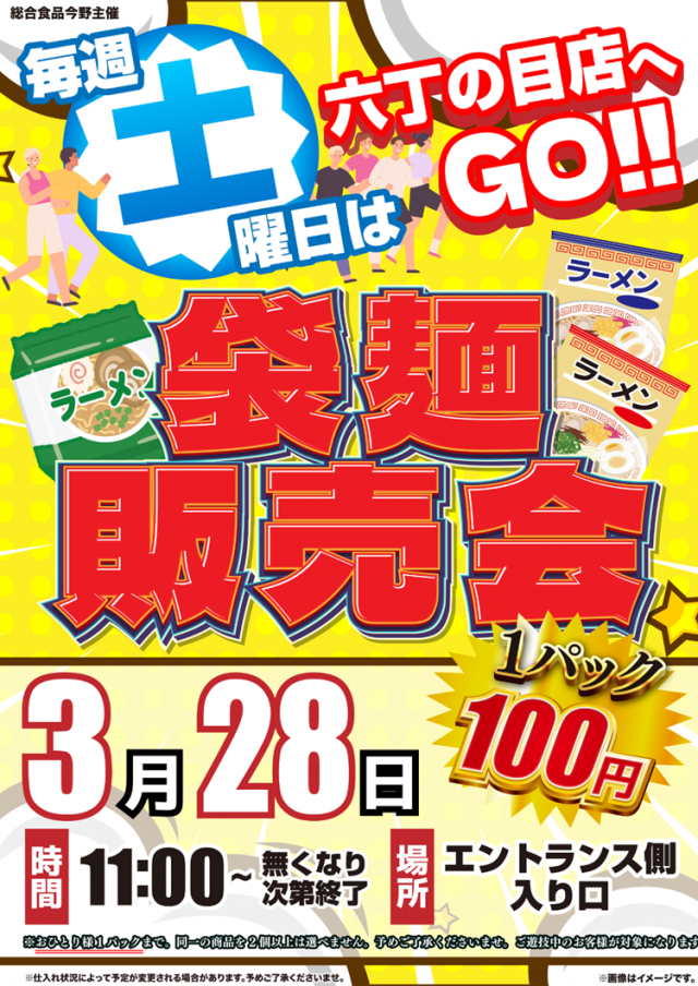 🌈明日3月18日カップ麺販売会は11時~開催!🌈朝9時開店🌈