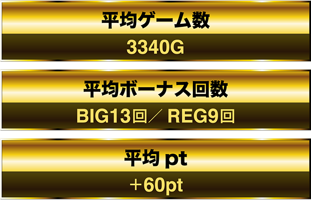 15時頃にデータカウンターをみると、3台のボーナス当選回数が30回を上回り、ボーナス合算確率は3台すべてが1/120以上であった。