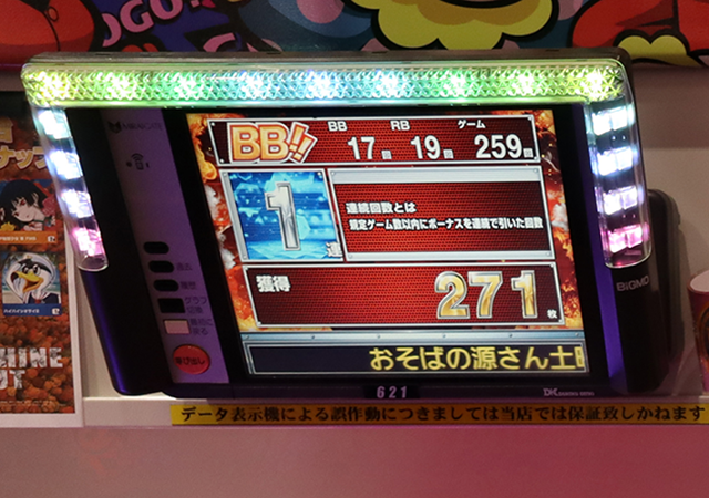遊技を満喫しているような姿のほかに、17時の時点でボーナス当選回数が36回の台も確認している。