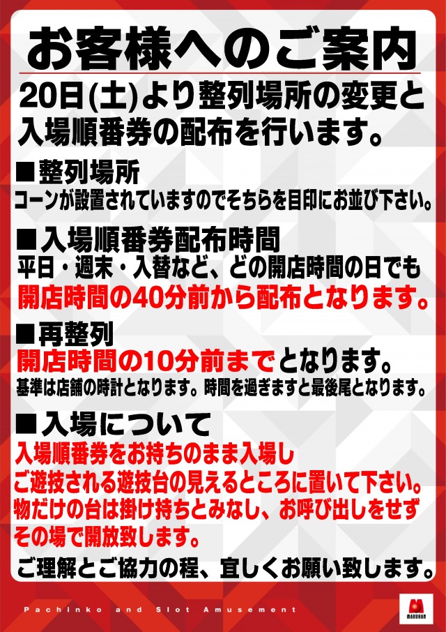 抽選参加締切は開店時間40分前までにお並び頂いた方が対象です。 |