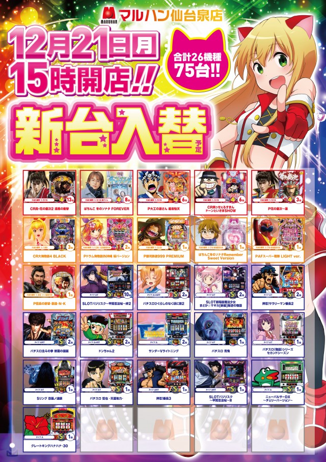 12月21日(月)15時オープン!新台入替(予定)