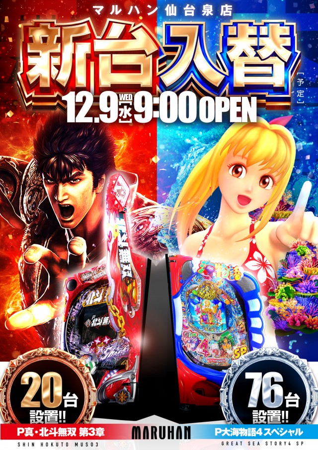 12月9日(水) あさ9時オープン!!新台入替(予定)