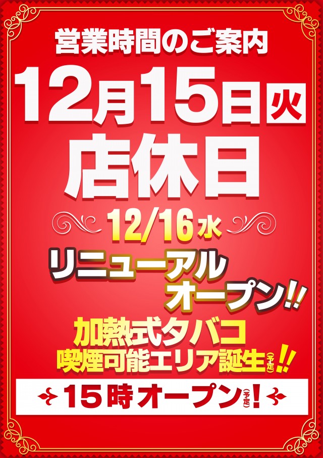 12月16日(水)★リニューアルオープン★15時開店予定
