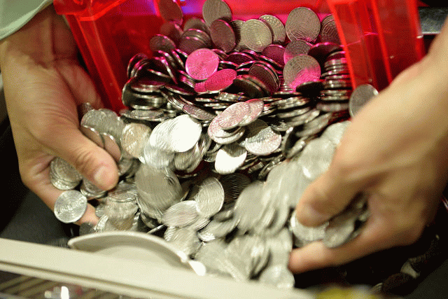 巨大な「マルハンタワー」には、銀玉が“たわわ”に実っている。