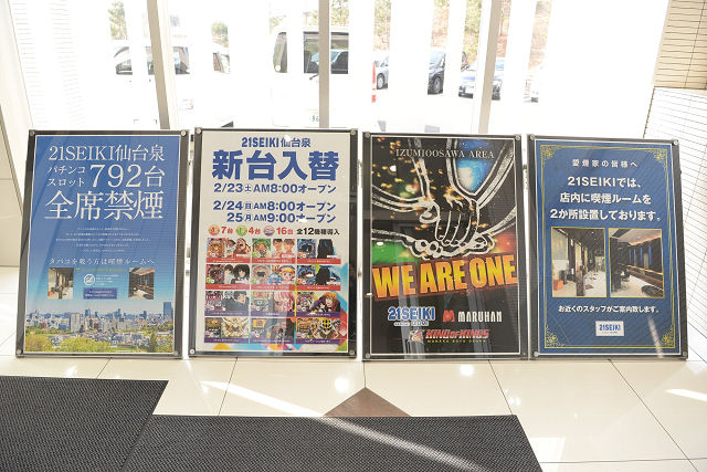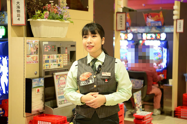 全台分煙ボードと各台計数機搭載のパチンコエリアは台移動も手軽に、気軽に立ち寄れる手軽さも標準装備しているのだ。